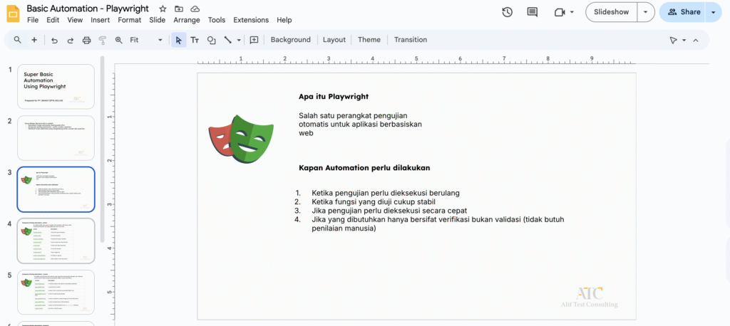 Latar Belakang : Tim QC membutuhkan pelatihan menggunakan tools Playwright untuk mengotomasi pengujian di Javan. Level materi yang disampaikan kami sesuaikan dengan level peserta yang masih berstatus magang